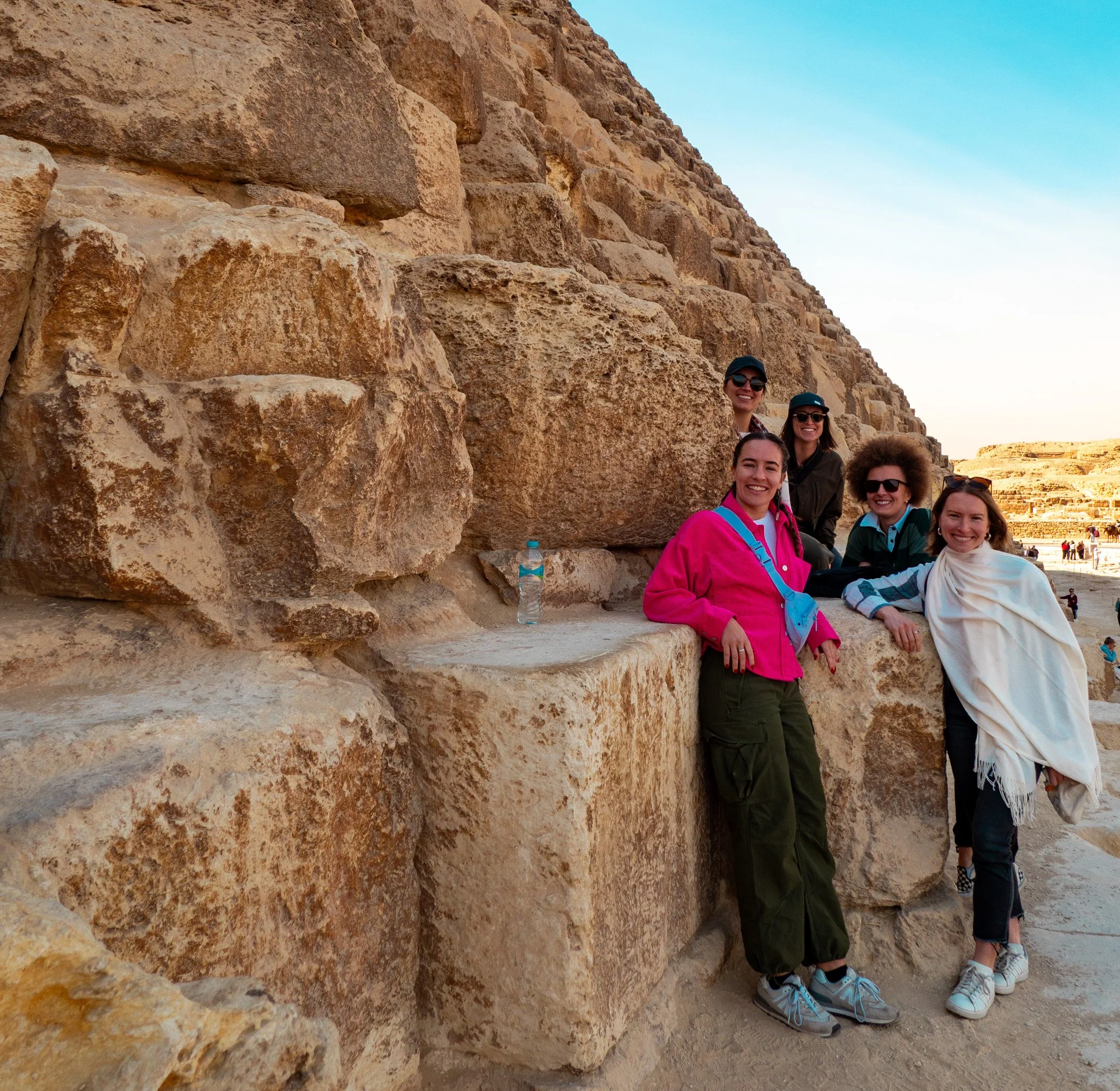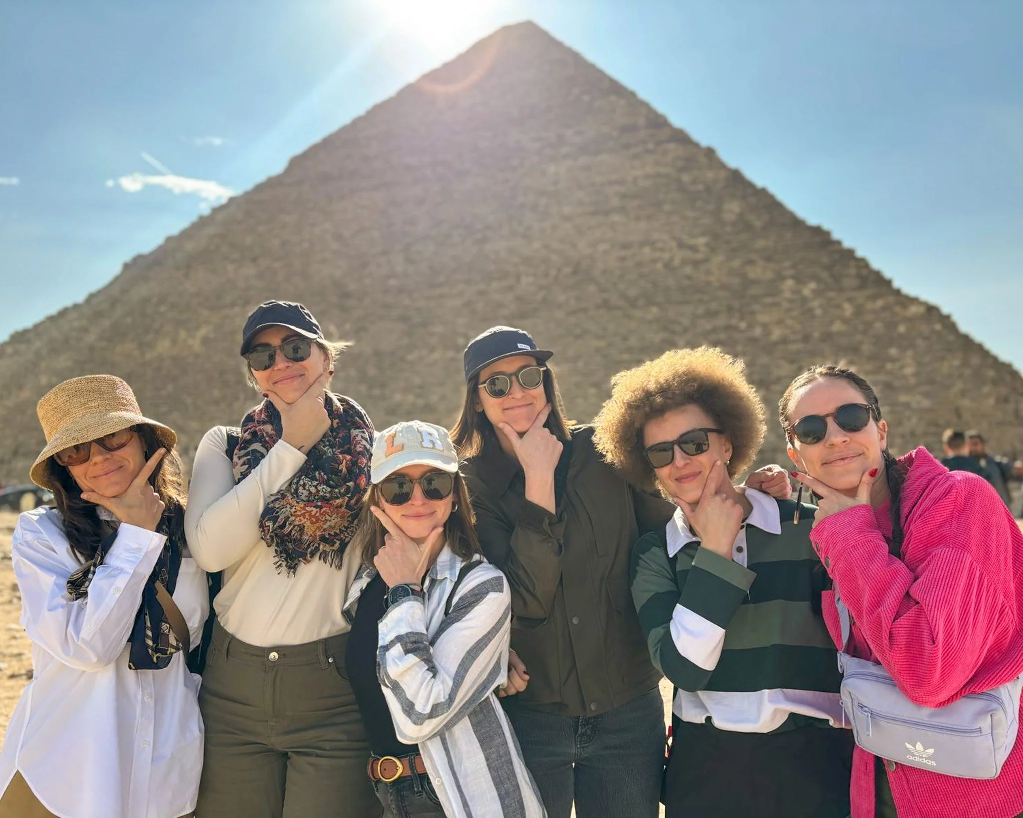 Fast forward to January 16, 2025 and me (Molly), my sister (Bean) and 4 of our closest friends (Caila, Carolyn, Leni, Tina) were giggling our way through DIA – hangry on the tube in London, severely misjudging how much time we had on our layover – and then finally confirming with our driver that yes! we were indeed a group of 6 young women traveling in Cairo all by ourselves (everybody was very confused by this).